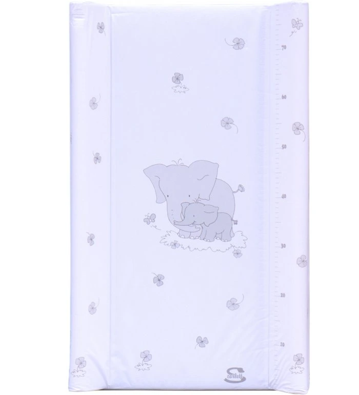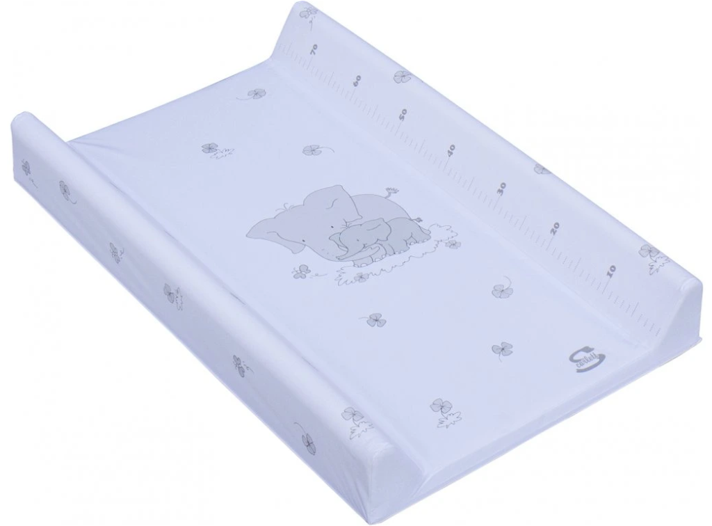 Přebalovací podložka s pevnou vložkou z MDF a profilovanými okraji z kvalitním PVC potahem bez ftalátů, vyplněná molitanem. Podložka má zarážky které brání pohybu při položení na postýlku