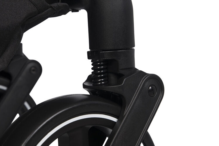 Inovativní systém 3 tlumičů na zadní nápravě kočárku a 3 odpružených předních kol umožňuje pohodlnou jízdu na různých površích. Zadní pružiny byly podrobeny speciálnímu procesu kalení, aby zůstaly déle pružné i při maximálním zatížení 44 kg.