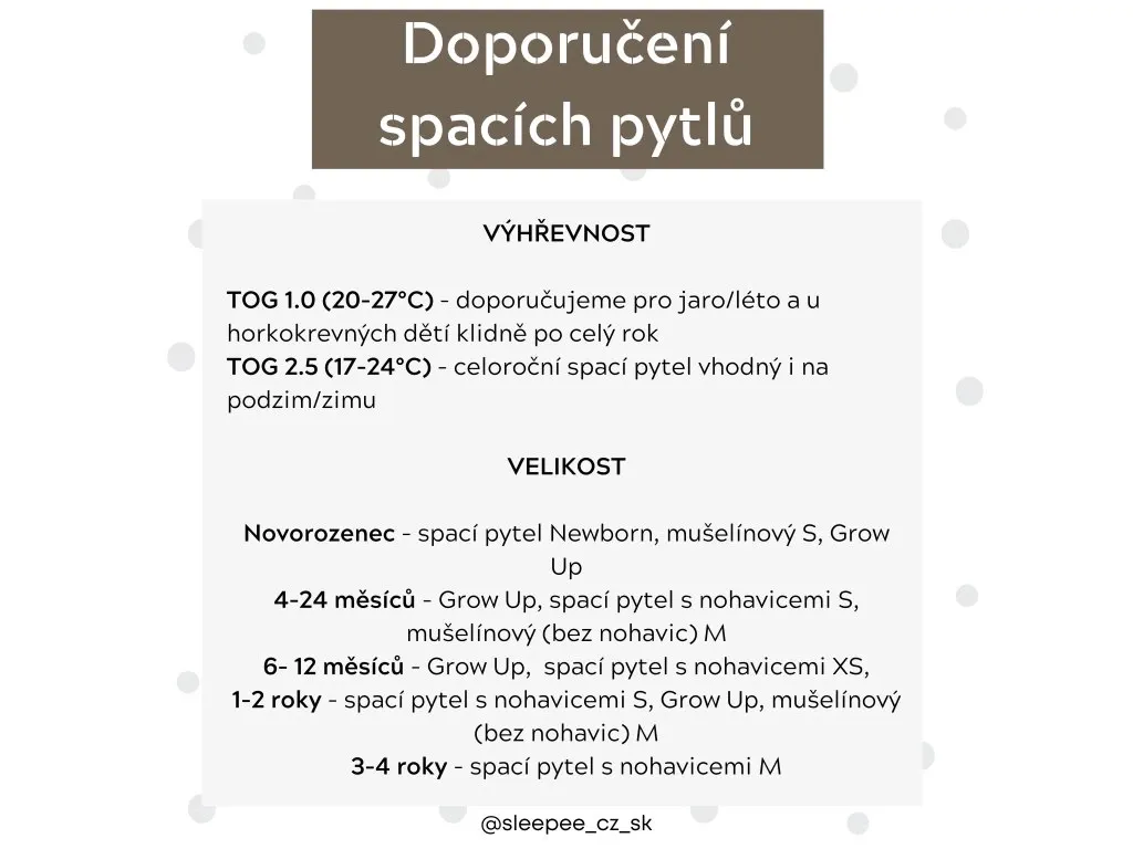 - oboustranný zip, díky kterému můžete dítě v noci snadno přebalit, aniž by se probudilo