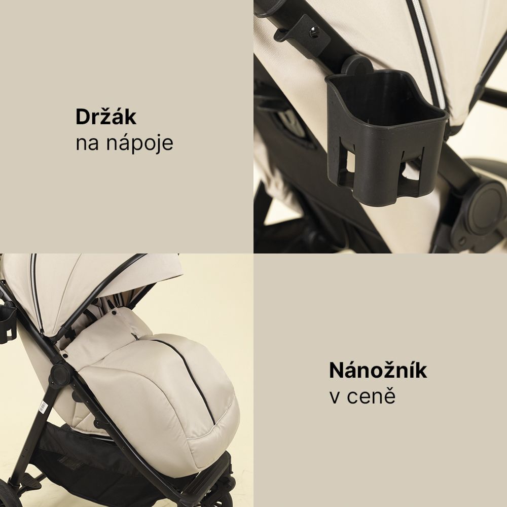 4Baby Moody je moderní sportovní kočárek s nánožníkem a držákem na ...