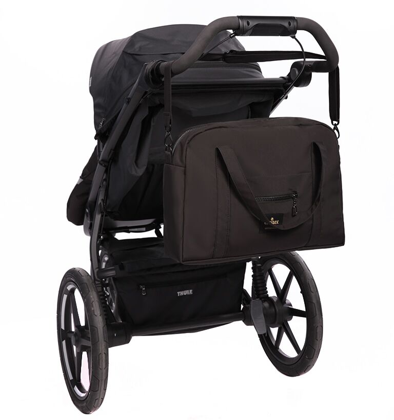 Krásná a praktická přebalovací taška ke kočárku z ekokůže v černé b...