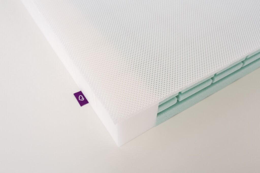 vysoce flexibilní, samostatné 3D komfortní polštářky s novou úrovní komfortu a bodové elasticity, v kombinaci s 3D poduškou se vzduchovým polstrováním (strana pro kojence) pro vynikající odvětrání strany pro kojence a celého jádra matrace, odvětrané hrany zpevněné proti sešlápnutí