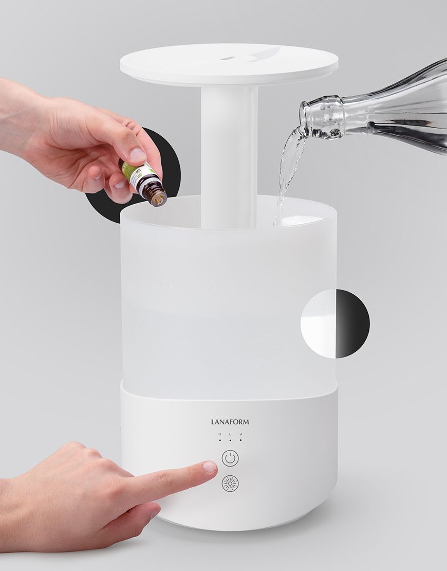 Ultrazvukový vlhčovač vzduchu Lanaform DOBRA zvlhčí interiér, provoní domácnost vaší oblíbenou vůní a dodá jí stylové světlo.