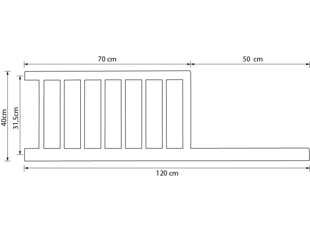 Bočnice je vyráběna z bukového dřeva. Bočnici je možné, za použití vhodného nářadní, doplnit snadno k jakékoli postýlce o rozměru 120 x 60 cm z naší nabídky.