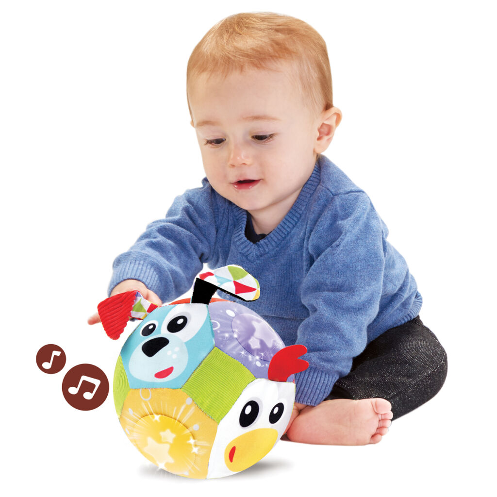 Při jakémkoliv pohybu míče začne hrát veselá melodie a rozsvítí se barevné hvězdičky. Tímto se dítě učí vztahu „příčina-následek“. Pobízí dítě, aby míč stále házelo a lezlo za ním.